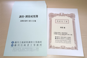 当事務所で調査・測量・書類作成・申請代理等を行います。 場合によっては他士業との連携を行うこともあります。 |
